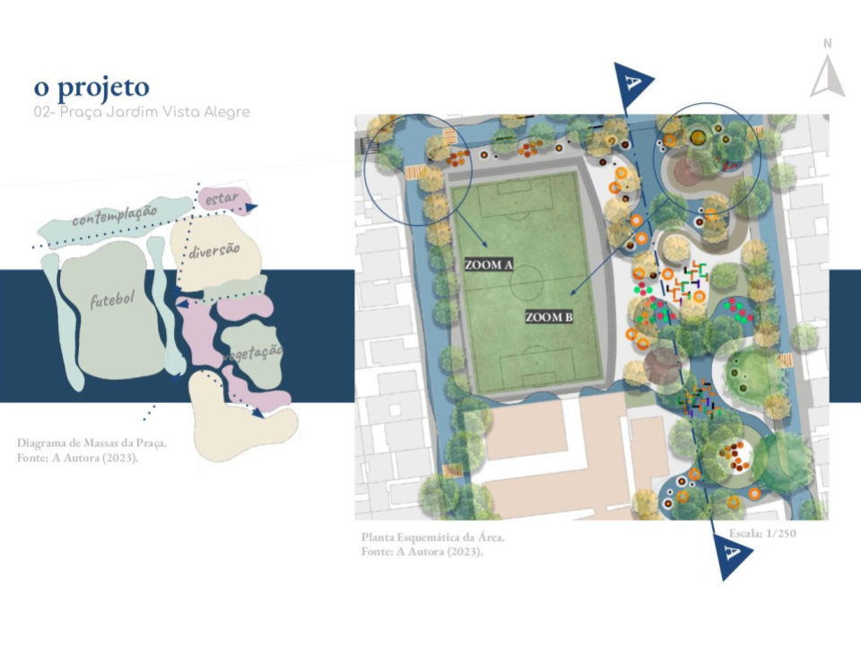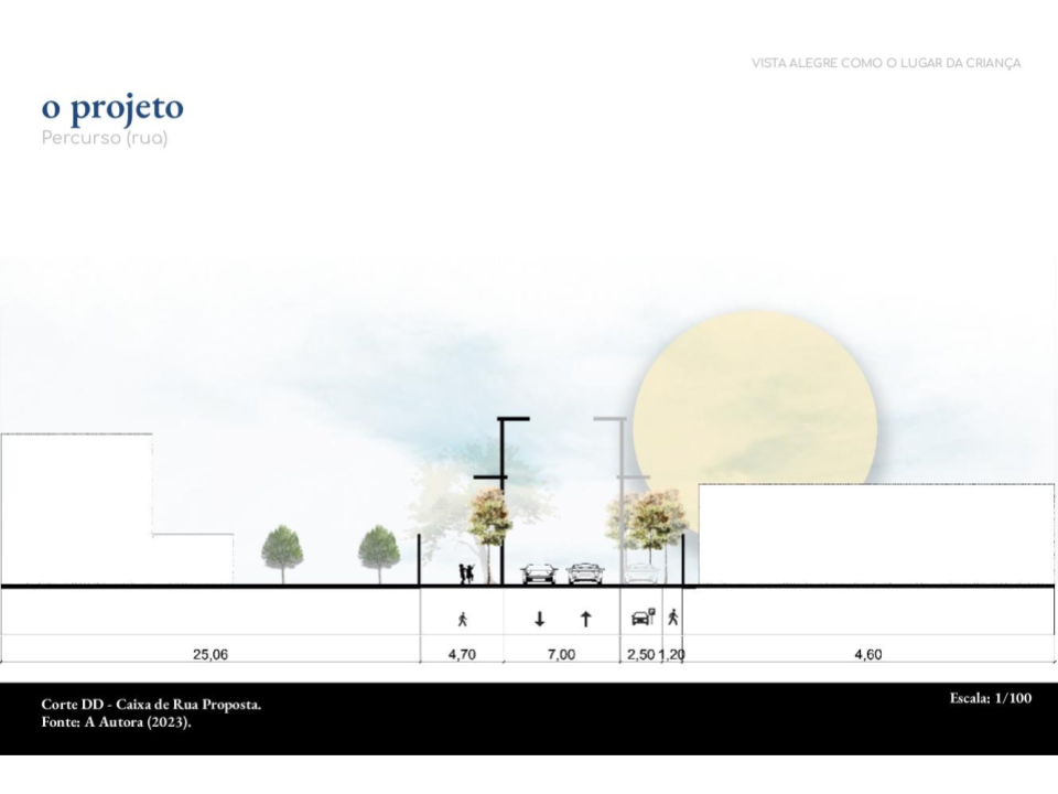 O projeto de intervenção urbana foi desenvolvido no bairro de Vista Alegre, na zona norte do Rio de Janeiro, com foco em promover uma relação entre escola, praça e rua. A problemática enfrentada inclui a falta de ligação das escolas com seu entorno e a ausência de liberdade das crianças e seus responsáveis enquanto realizam esse percurso. Todo o projeto da autora vislumbra um território educativo, promovendo articulações entre a escola e o território, a criação de uma nova creche municipal e a revitalização das ruas, com novas pinturas e implementação de mais árvores locais, requalificando todo o antigo espaço. Essa proposta visa tornar a rua um ambiente educativo e de aprendizagem, além de ser um lazer para as crianças, criando um ambiente seguro, lúdico e acolhedor.